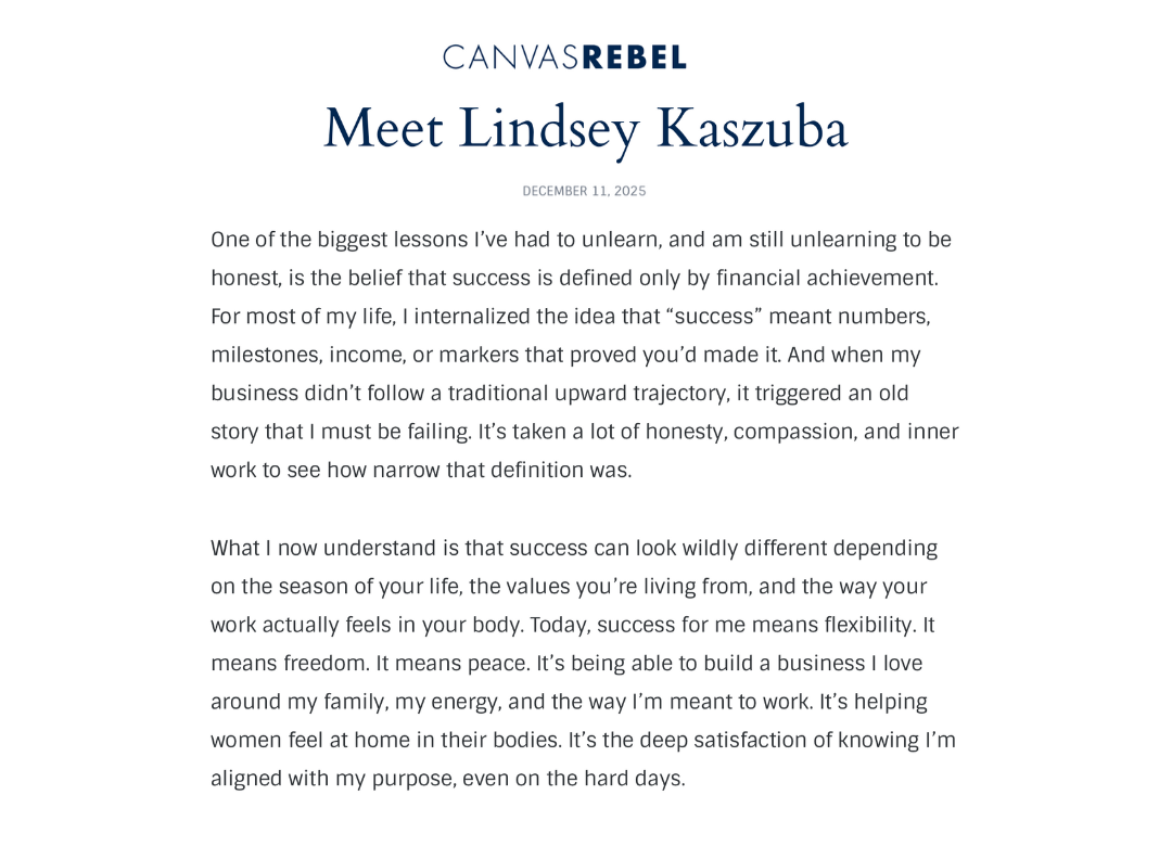 Meet Lindsey Kaszuba Dec 17 Written By Lindsey Kaszuba Read full article press featurecanvas rebeldefining successclient relationships Lindsey Kaszuba